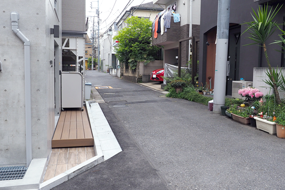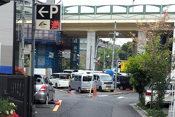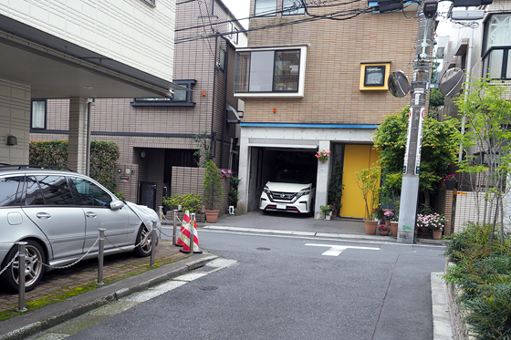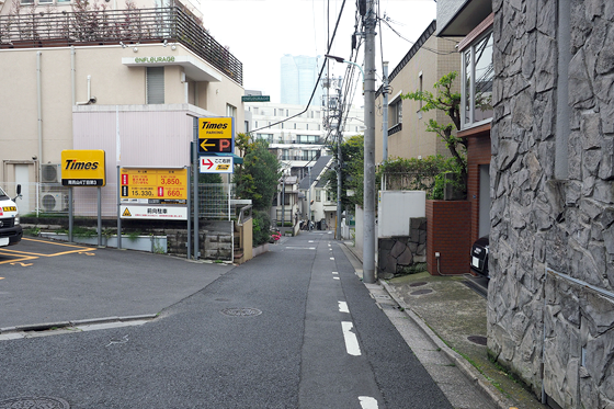 6. 階段を下りますと目の前にコインパーキングがありますので、その間の道を奥へ進みます。