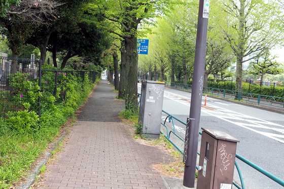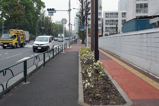 2.まっすぐ進みますと「外苑西通り」が出てきます。ここで横断歩道を渡ってから左へ曲がります。
