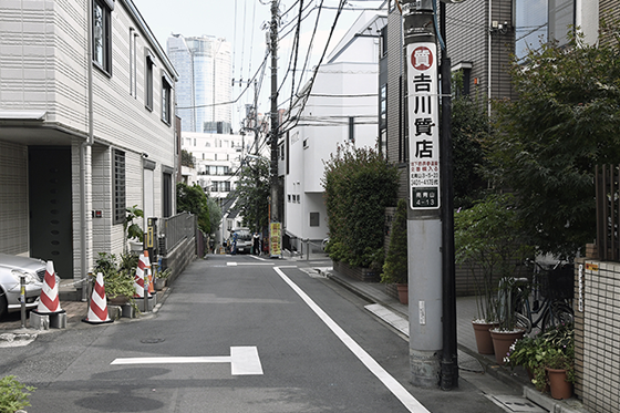 6. 分かりづらいのですが、「吉川質店」さんの看板の電柱を目印に、左へ曲がります。